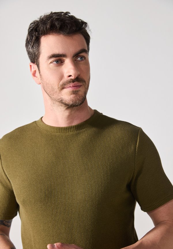HOT ! BASIC RIB T-SHIRT - Basic T-shirt - dark olive