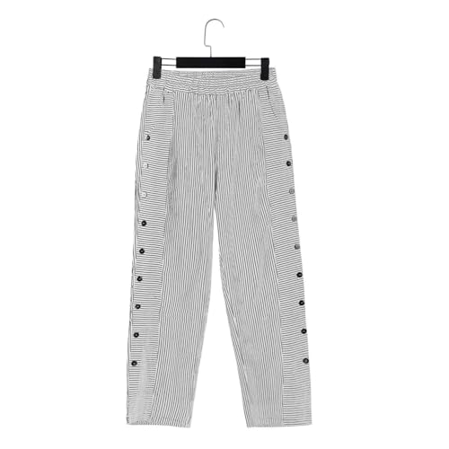 HOT ! Cropped Linen Pants for Women Casual Straight Leg Elastic Waist Pants Stripe Print Beach Summer Pants with Pockets