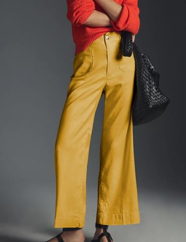 More information about Cropped Wide-Leg Pants Casual High Waist Baggy Pants Stretchy Straight Trousers with Pockets