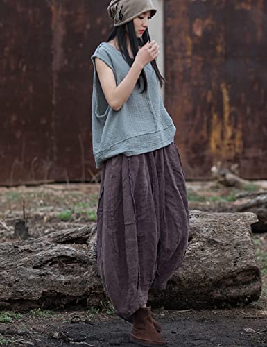 NFYM Women Wide Leg Elastic Waist Cotton Linen Distressed Patchwork Pumpkin Style Wide Leg 3/4 Length Cropped Pants 7