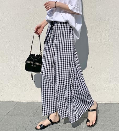 • Fashion plaid wide leg pants for women high waisted, featuring vintage plaid checked pattern, lightweight and comfortable to wear, flattering to hide your thick legs, makes you look tall and slim while in it.