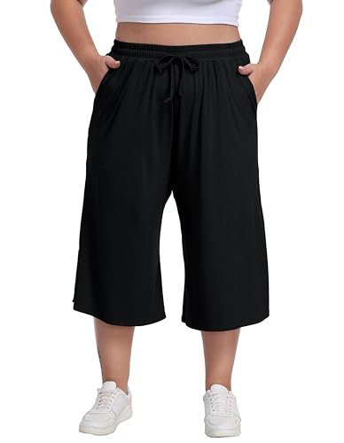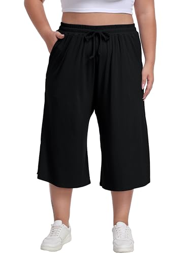 HOT ! Women's Plus Size Wide Leg Capris Summer Palazzo Lounge Cropped Pants Casual Flowy Capri Pants with Pockets