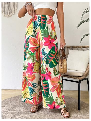 Women's Tropical Palazzo Pants Boho Summer Casual Wide Leg Flowy Trousers 1