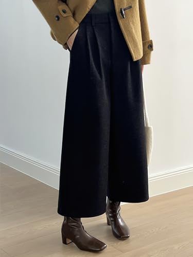 chouyatou Women's Fall Winter Wool Culottes Cropped Pants Elastic High Waisted Loose Wide Leg Palazzo 6