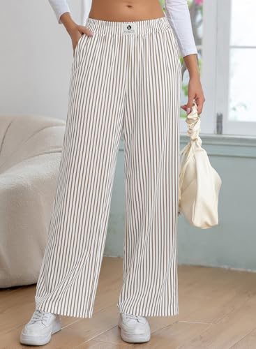 EVALESS Women's Striped Pants 2025 Comfy High Waist Wide Leg Lounge Pants Y2K Casual Lightweight PJ Bottoms with Pockets 5