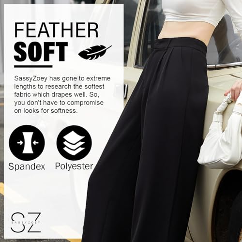 • ✅ COMFORTABLE & HIGH QUALITY FABRIC: Sassy Zoey women's wide leg pants are made of 97% polyester and 3% spandex to ensure durability. The fabric of our high waisted pants for women is smooth to the touch, resulting in a luxurious feel. These trousers for women have a comfortable fit and elastic waist for all day use.
