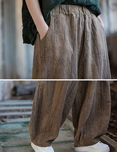 More information about NFYM Women's Casual Distressed Cotton Linen Wide Leg Baggy Pants Elastic Waist Relax Fit Lantern Trouser