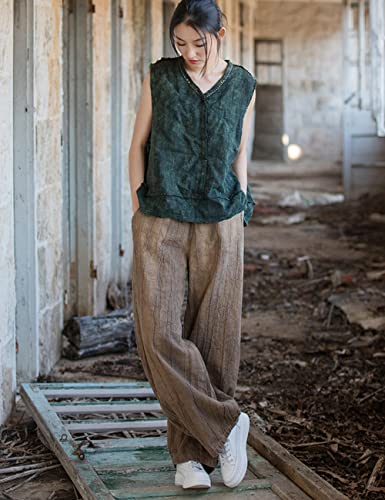 HOT ! NFYM Women's Casual Distressed Cotton Linen Wide Leg Baggy Pants Elastic Waist Relax Fit Lantern Trouser