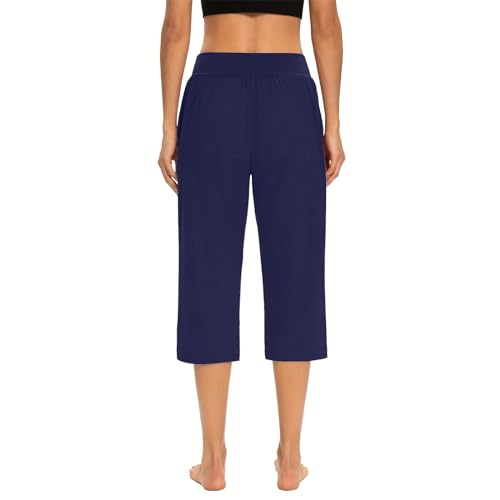 Pull On Capris for Women Dressy Casual Stretch Lightweight Capri Elastic High Waist Lounge Pants 2025 Summer 6
