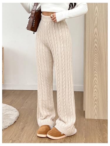HOT ! SHENHE Women's Cable Knit Sweater Pants High Waisted Casual Lounge Pants Fall Knit Pants