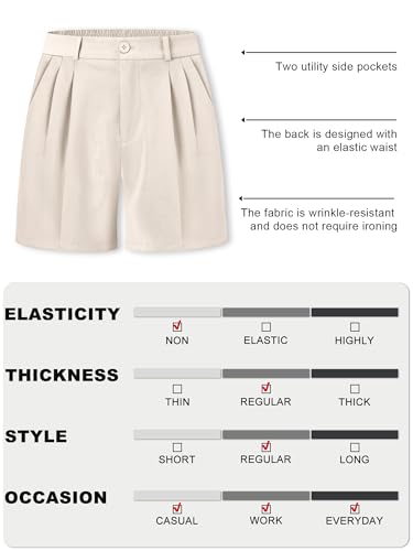 Betusline Women's Shorts Summer Casual Work Pleated Dress Shorts with Back Elastic Waist 6