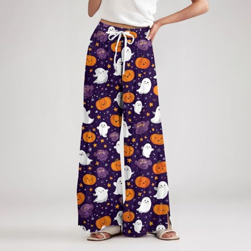 HOT ! Boho Wide Leg Pants for Women Flowy Drawstring Floral Palazzo Pants Baggy Tropical Hawaiian Pull on Beach Pant