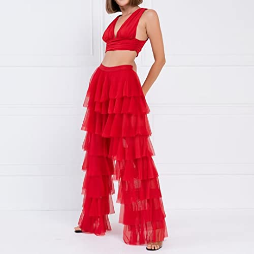 HOT ! Women's Long Tiered Ruffled Tulle Pants Sheer Mesh Evening Party Layered Pants