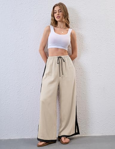 Lentta Womens Linen Wide Leg Pants Side Striped Palazzo Pants Beach Pants with Pockets Lounge Vacation Outfits 5