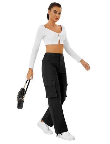 HOT ! Cargo Pants for Women High Waisted Wide Leg Casual Pants with 4 Pockets Baggy Cotton Pants Y2K Streetwear
