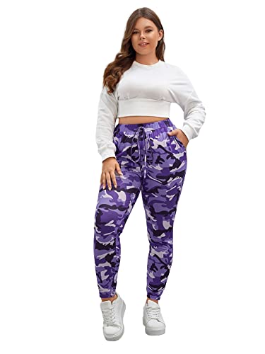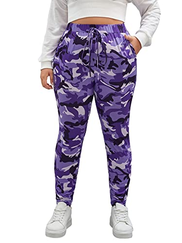 WDIRARA Women's Plus Size Camo Print Tie Front Stretch Skinny Long Pants 6