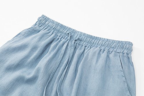 More information about Womens Linen Cropped Pants Loose Casual Capri Cotton Wide Leg Plus Size Elastic Waist with Drawstring Trouses Light Blue 5XL