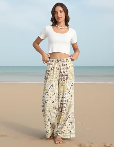 More information about Palazzo Pants for Women with Pocket Mid Waisted Elastic Drawstring Baggy Casual Summer Boho Beach Vacation Pants 2025