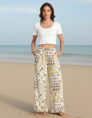 Palazzo Pants for Women with Pocket Mid Waisted Elastic Drawstring Baggy Casual Summer Boho Beach Vacation Pants 2025 6