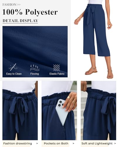 More information about ALIGADUO Womens Capri Pants Casual Wide Leg Loose High Waist Lounge Pants with Pockets