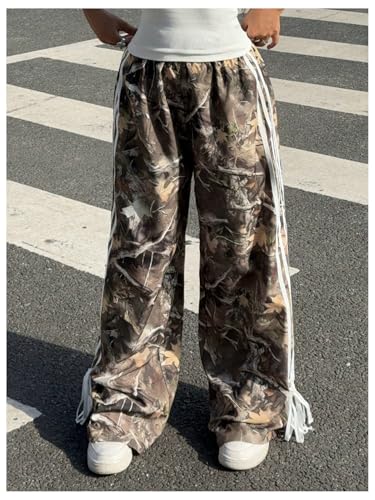 More information about OYOANGLE Women's Graphic Print Striped Bow Tie Side Pants Elastic High Waist Wide Leg Baggy Y2K Trousers