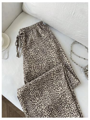More information about Floerns Women's Y2k Wide Leg Pants Leopard Drawstring Low Waist Loose Lounge Trousers