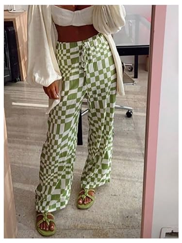 • Design: The women's pants are feature with plaid, drawstring waist, elastic high waist, straight leg, slant pocket