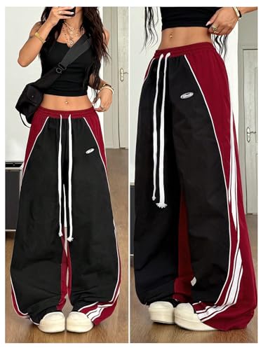 More information about GORGLITTER Women's Baggy Track Pants Y2K Color Block Drawstring High Waisted Parachute Pants