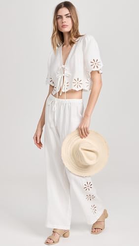 • Covered elastic waist with drawstring, Floral eyelet cutouts at sides