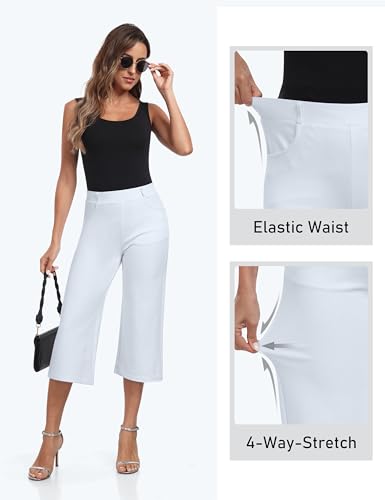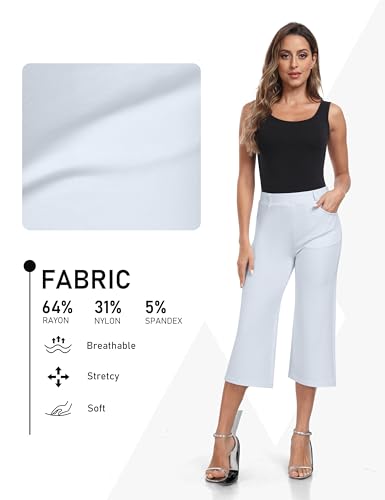 • [Material] 64% Rayon+31% Nylon+5% Spandex.Women's wide leg capri pants are well made of high quality 4-way stretch fabric that is soft and stretchy.