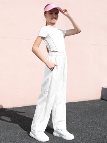 SANGTREE Girls & Woman Wide Leg Pants Lightweight Casual Elastic High Waist Straight Leg Loose Trousers,4 Years - Woman 2XL 6