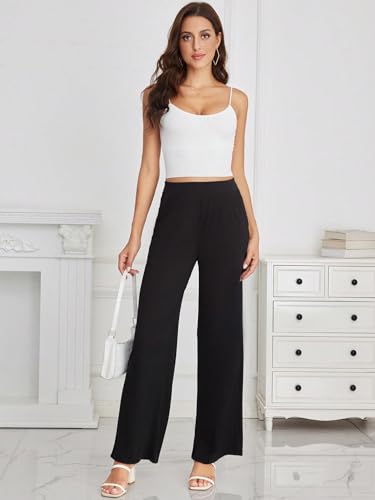 Women's Plus Size Wide Leg Palazzo Pants Elastic Waist Loose Trousers 6