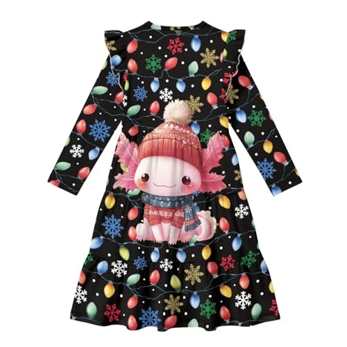 Girls Long Sleeve Dress Cute Ruffle Tiered Swing Dresses Pleated A-line Skater Twirly Midi Sundress for 3-14 Kids 6