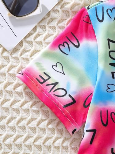 Floerns Girl's Heart Love Print Short Sleeve Ruched Side Bodycon Mini Dress 6