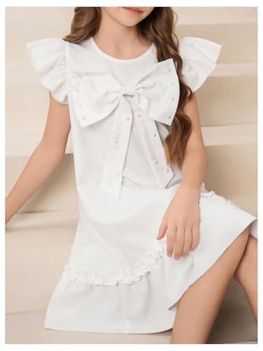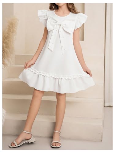 Verdusa Girl's Bow Knot Beaded Dress Ruffle Cap Sleeve Summer Dresses 6