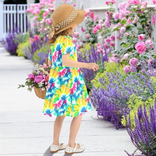 Emelivor Tie-dye Circular Vivid Girls Summer Dress Toddler Girl Skater Dresses Short Sleeve Dress for Kids,2T 7