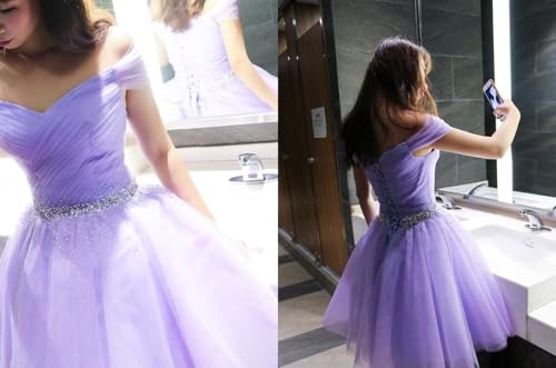 More information about Asulla Sequins Off Shoulder Short Prom Homecoming Dresses for Teens Puffy Tulle Cocktail Party Dress