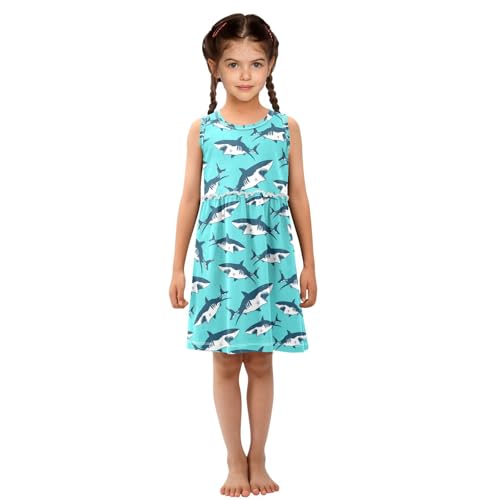 Shark Girl Sleeveless Tank Dress Blue Crewneck Twirl Swing Dress for Kids 3T 4
