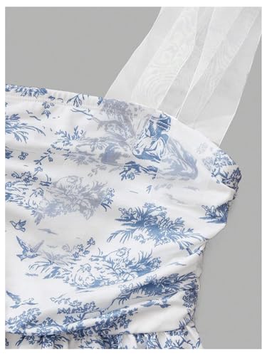 More information about Girl's Floral Cami Dress Tie Shoulder Bowknot Sleeveless Ruched Ruffle Vacation Sundress
