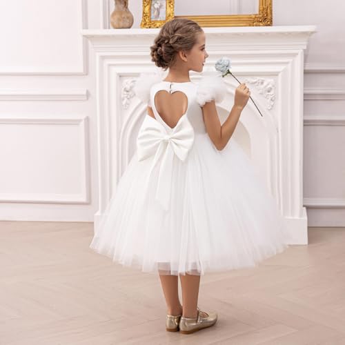 4-8Y Flower Girl Dress Puffy Fancy Tulle Heart Cutout Formal Holiday Gown for Wedding Pageant Party Birthday Princess 5