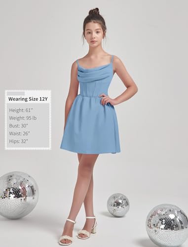 EXARUS Girls Formal Dress Homecoming Dance Teen Graduation Ruched Party Spaghetti Strap A-line Ruffle Dresses 4