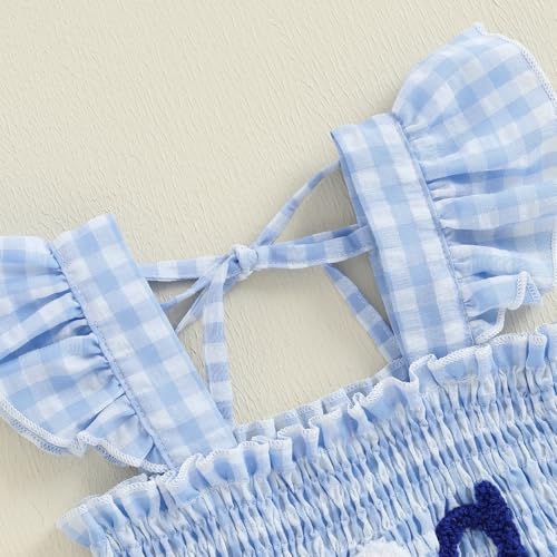 Toddler Girl Dresses 4th of July Smocked Dress Sleeveless Ruffle Layered Plaid Summer Sundress Patriotic Clothes 1