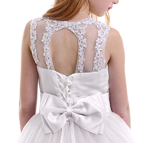 • CHIC CUTE DESIGN : Classical elegant long tail design, A floor-length formal long tulle party dress for kids girls, featuring elegant and gorgeous design. Sleeveless bodice adorned with faux rhinestone decor, hollow out back, with zip fastener and lace-up design at the back. Suitable for daily wear and special occasion like wedding party, holiday party, ceremony, baptism, birthday party, pageant etc.
