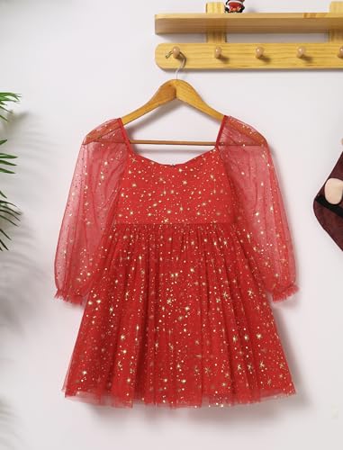 • Girls Sparkly Dress: Toddler girls Christmas dresses sparkly tutu dress glitter stars tulle skirt sheer mesh puff long sleeve fall dress clothes, little princess pageant birthday party sequin bwoknot dress, baby kids flower girl wedding first communion gown casual Xmas holiday dress cake smash photo shoot dress outfits for 3-8 year-old girls
