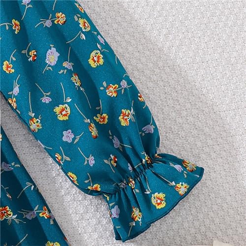 HOT ! Girls Casual Floral Dress Long Sleeve A-Line Smocked Chiffon Pleated Midi Dresses for Teen Girl (Blue #6, 10-11 Years)
