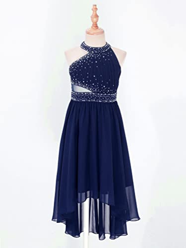 Kids Flower Girl High-Low Dress Sleeveless Halter Ruched Wedding Bridesmaid Dress Formal Party Gown 6