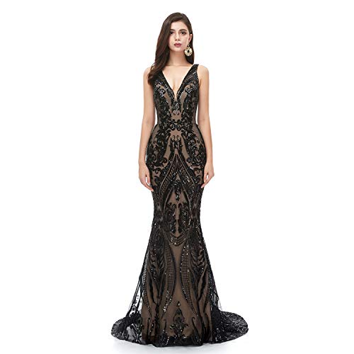 More information about Datangep Sequins V Neck Mermaid Evening Dress Party Trumpet Prom Gowns Lace-up Bride Bridesmaid Dresses