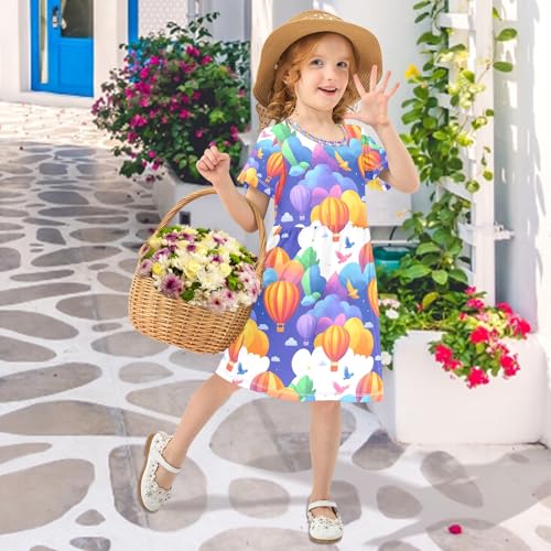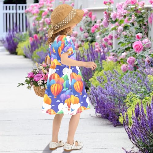 Summer Girl Dresses Hot Air Balloon Colorful Toddler Short Sleeve A-line Dress Casual Sundress 6