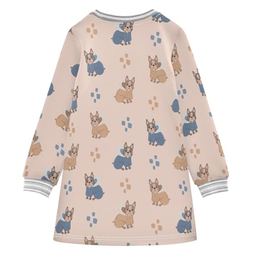 Girls Dresses Toddler Girl Clothes French Bulldog Cute Pet Winter Casual Long Sleeve for Kids 2-8 Years 5