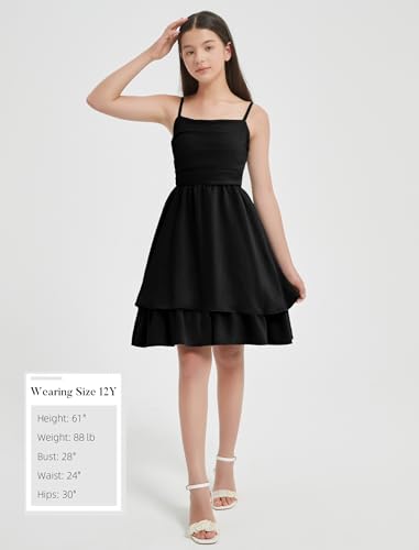 EXARUS Girls Formal Dress Teen Ruffled Flowy Ruched Spaghetti Strap Homecoming Dance Party Tween Dresses 8-14Y 2